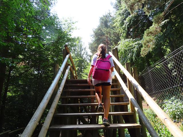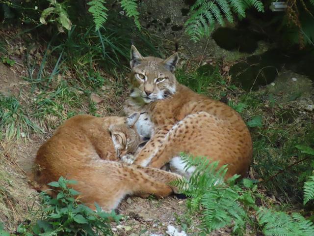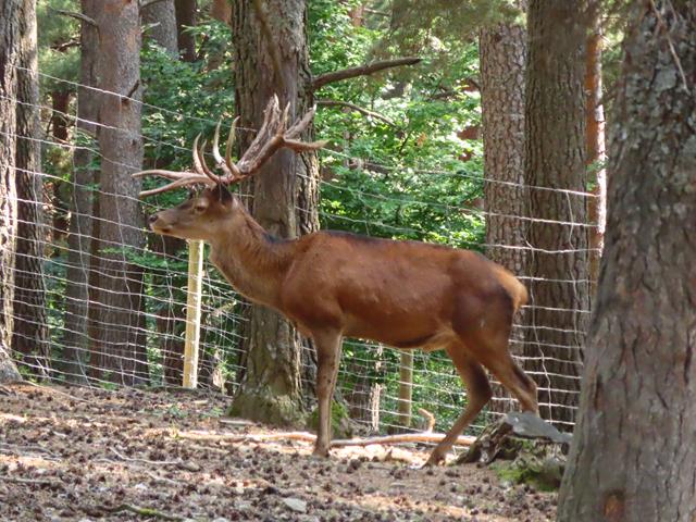 Llegamos a la zona donde se puede ver el lince. Hay que subirse a una plataforma de madera, donde se supone se puede contemplar a este felino. No es fácil. Miro y miro y nada. ¿No está a la vista?. Hay que tener en cuenta que aquí los animales no están en una pequeña jaula, afortunadamente por otra parte, sino dentro de un bosque, por lo tanto, pueden estar escondidos.