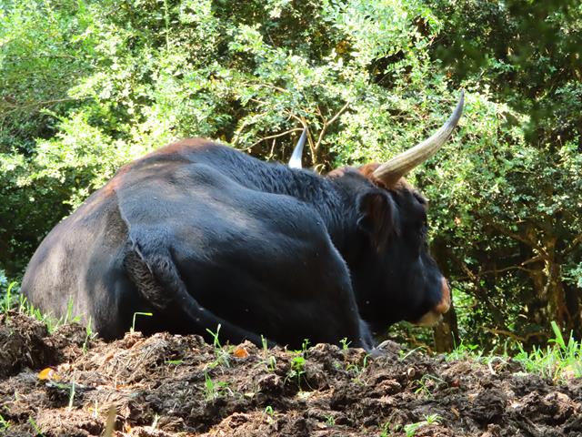 La visita se va animando. Ahora vemos un toro enorme. Un tal Bos taurus. Es brutal, enorme, nunca había visto algo así. Está tumbado, pero puedo apreciar lo grande que es este animal. Bos taurus, comúnmente conocido como toro o buey, en el caso del macho, o vaca en el caso de la hembra, es una especie de mamífero artiodáctilo de la familia Bovidae. Generalmente domésticos, aunque en algunos casos se han presentado en estado salvaje, se crían a lo largo y ancho del planeta por su carne, su leche y su piel.