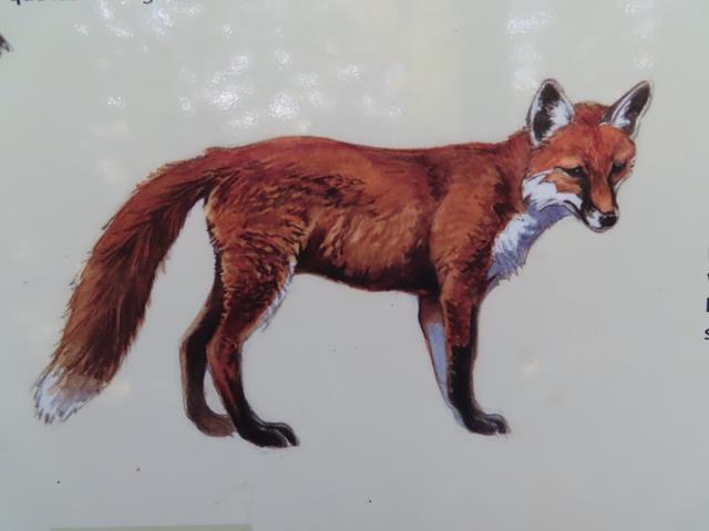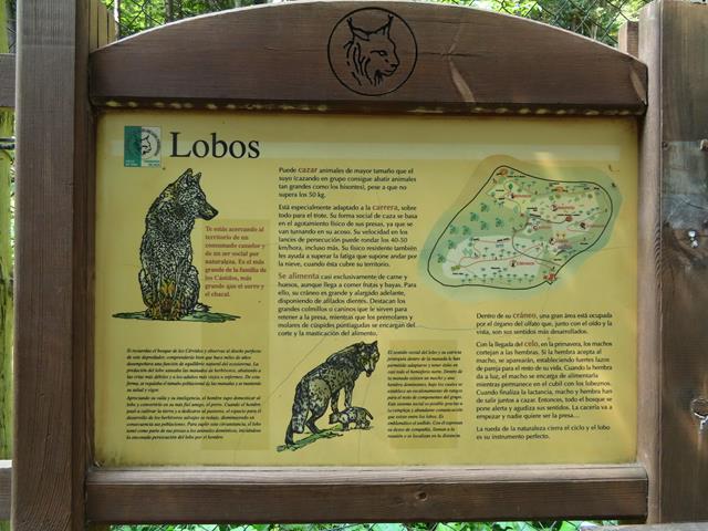 Tras visitar la zona del lobo, toca la del zorro. Pero esta vez no hay suerte. Ni rastro de él. Sí que vemos una madriguera. Puede que esté dentro. Pero eso es todo. Os dejo fotos del cartel. Es lo que hay.