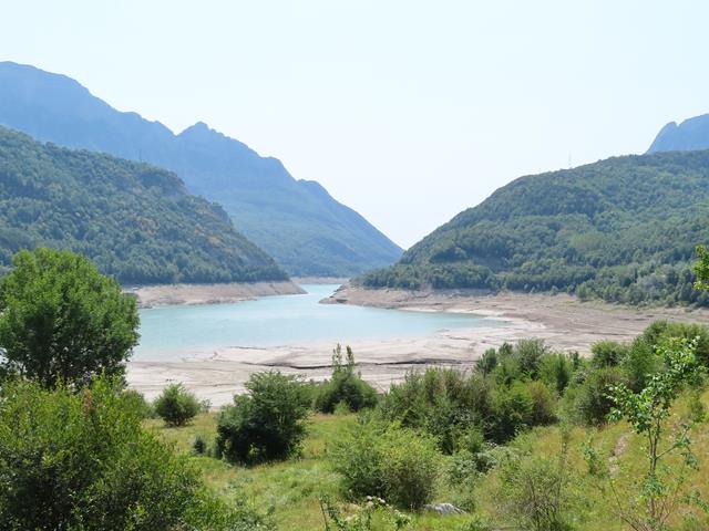 El embalse de Búbal está muy por debajo de su capacidad, pero también es curioso verlo así, normalmente está más lleno.