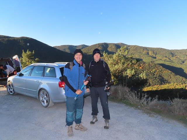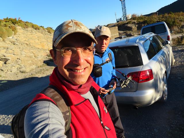 A esta hora hace algo de fresco, estamos a 1.293 m, así que llevamos ropa y gorro de abrigo. La previsión era día soleado y un grado de temperatura a las 9 de la mañana y 15 grados a las 14 horas. Pero pronto nos sobrará ropa durante la subida.