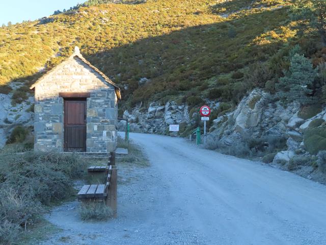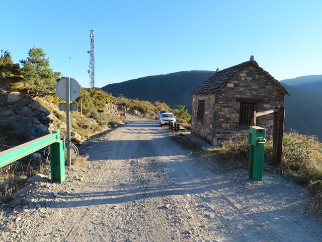 Avanzamos unos escasos metros por la pista hasta llegar a la zona de la barrera y la caseta. Hay dos opciones; o vamos por la pista, o tiramos por el monte por la misma senda que lleva dirección pico Mondoto y que luego deberemos dejar para desviarnos hacia la izquierda, hacia Cuello Arenas. Entre una sosa pista y el monte, no hay lugar a dudas, la elección está clara.
