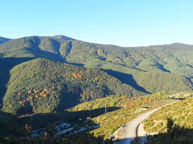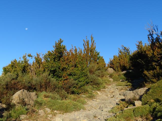Por encima de la ladera parece que destaca una loma puntiaguda. ¿Será esa la cima del Mondicieto?. No tengo ni idea. Puede ser que no, ya que tengo entendido que allí hay una antena y un pararrayos. Bueno pero igual está oculto a mi vista. Ya veremos.