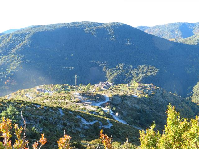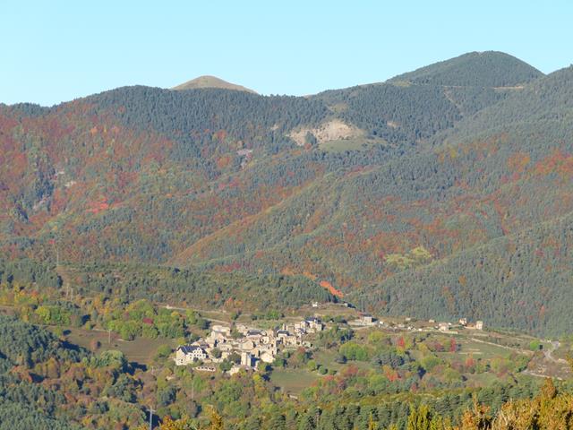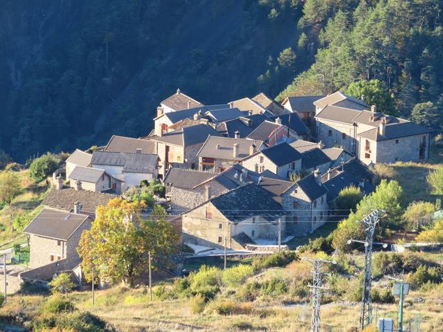 Podemos observar desde aquí los pueblos del Valle de Vió, Buisán (1.281 m) y Fanlo 1.342 m). Y al fondo los picos de Comiello (1.894 m) y Suerio (1.954 m).