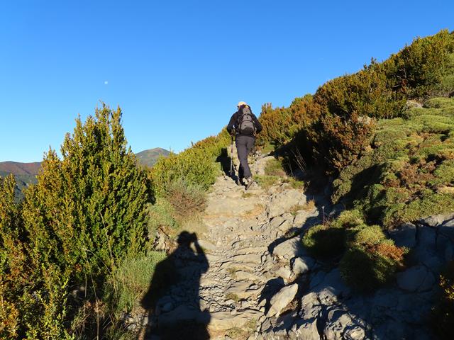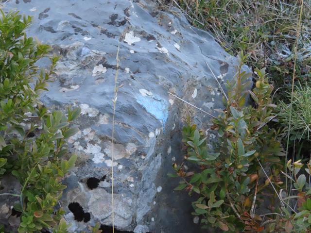 La senda está bien marcada sobre el terreno y además hay mojones de piedra y señales pintadas en la roca de color azul. Cuando subí al Mondoto, eran mayormente de color amarillo. Con fijarse en estas señales -hitos y pintura- cuando el sendero se desdibuja algo, es suficiente.