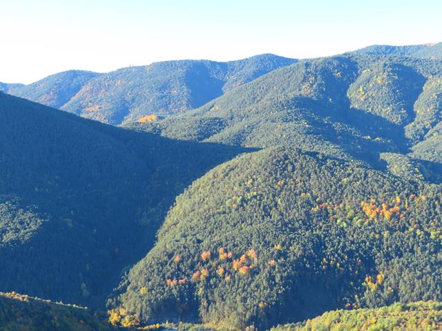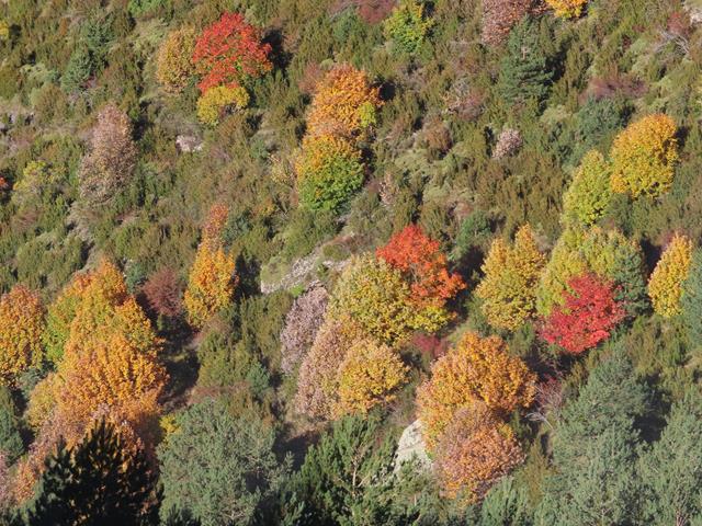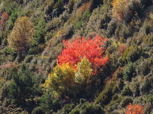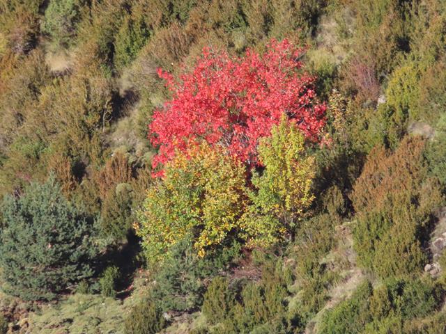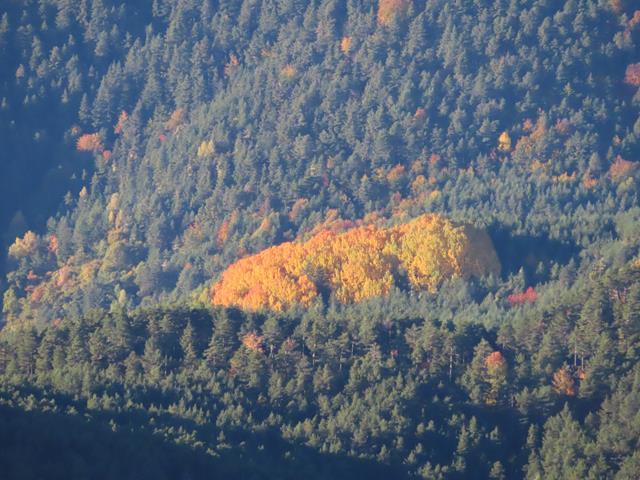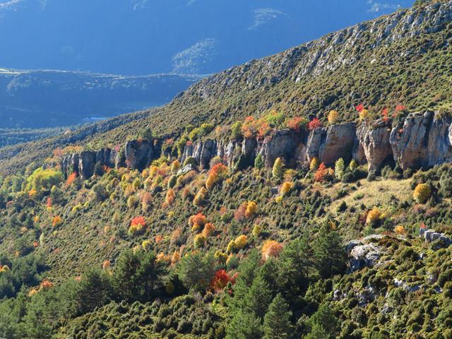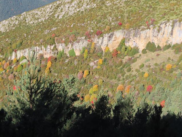 En la ladera de enfrente los colores del incipiente otoño se dejan ver en la vegetación. Los árboles de hoja caducifolia van adquiriendo esos tonos tan bonitos en esta época del año.