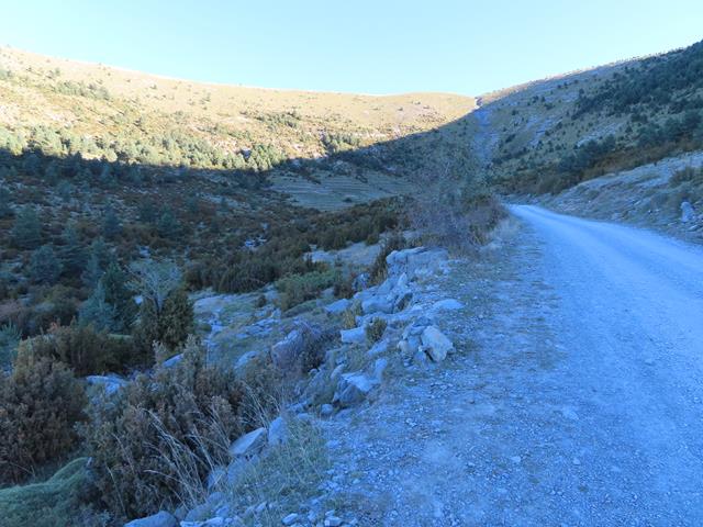 Ahora ya no la dejaremos hasta recorrer unos escasos 150 m hasta llegar al puente que salva el torrente que baja desde Cuello Arenas, ahora seco.