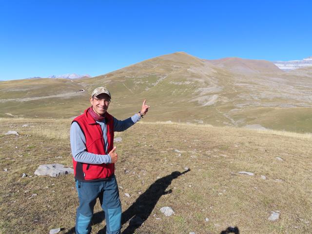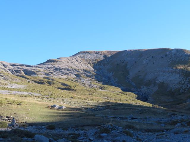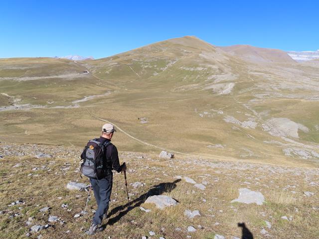 Mirando hacia Cuello Arenas que queda muy abajo, vemos también en el horizonte nuestro objetivo de hoy, el Mondicieto. Hasta allí hay que subir. No nos hemos embarcado en esto para no llegar a la cumbre. Así que pronto iremos hacia allí.