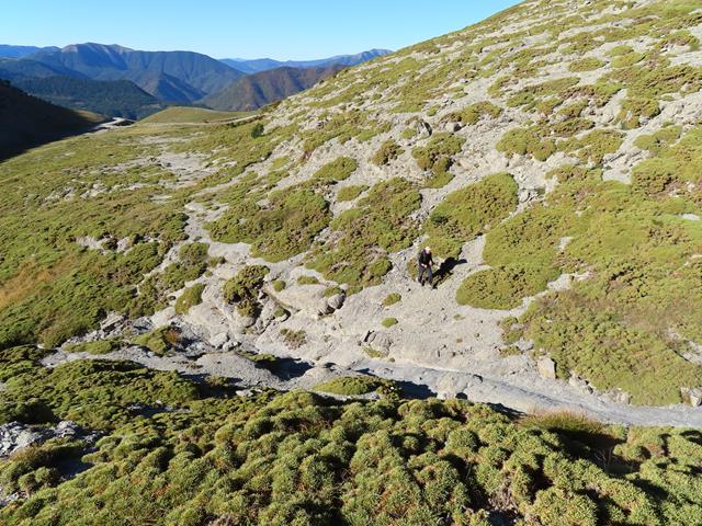 Vamos inspeccionando vías alternativas. Mientras Ángel va por abajo -como puede verse en la foto- yo subo una loma para ver si por ahí podremos avanzar o no y el terreno que tenemos por delante.