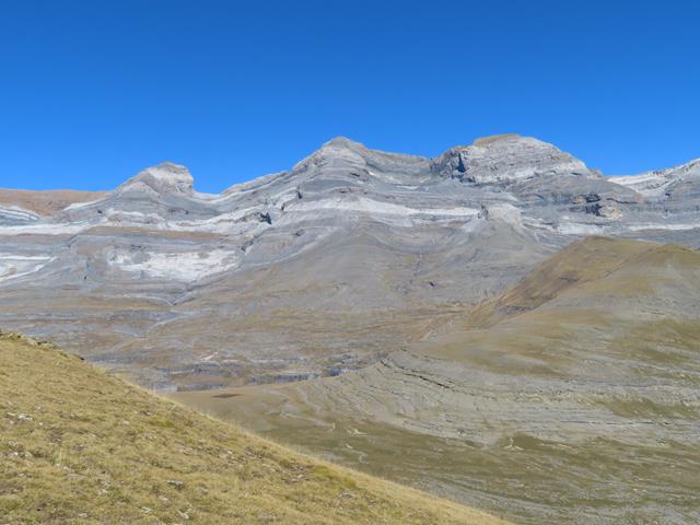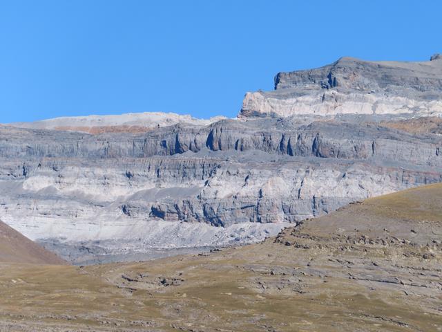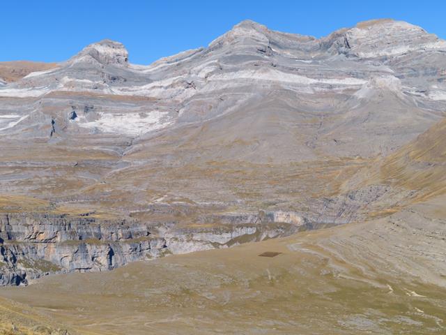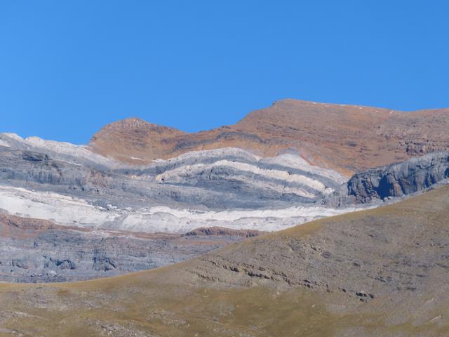 En estas fotos se pueden ver claramente las capas de roca sedimentaria que fueron elevadas desde el fondo de lo que hace millones de años era el mar. El macizo de Monte Perdido es la montaña calcárea más alta de Europa.