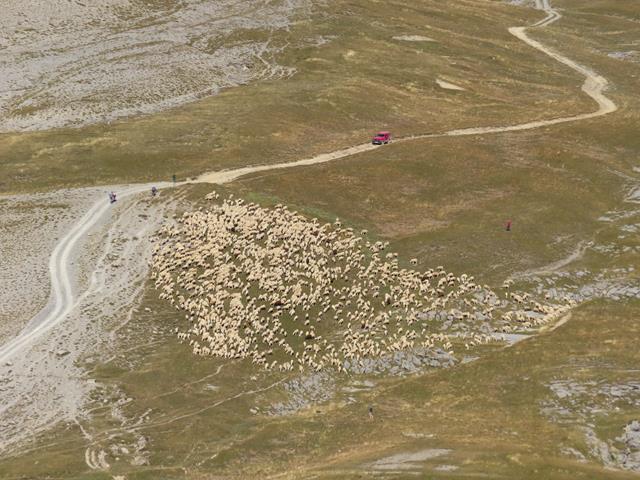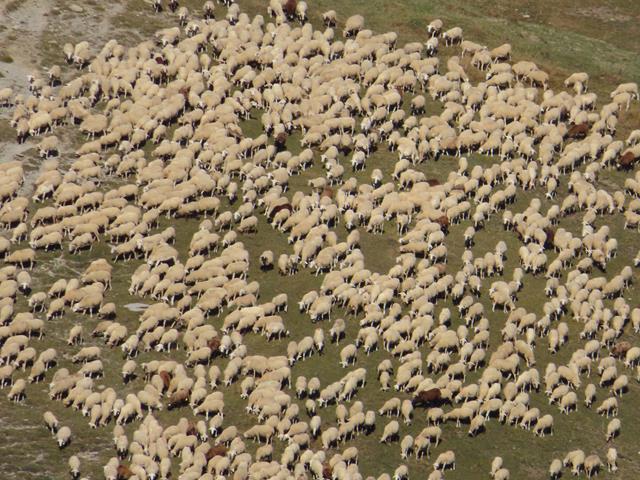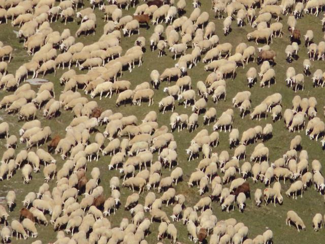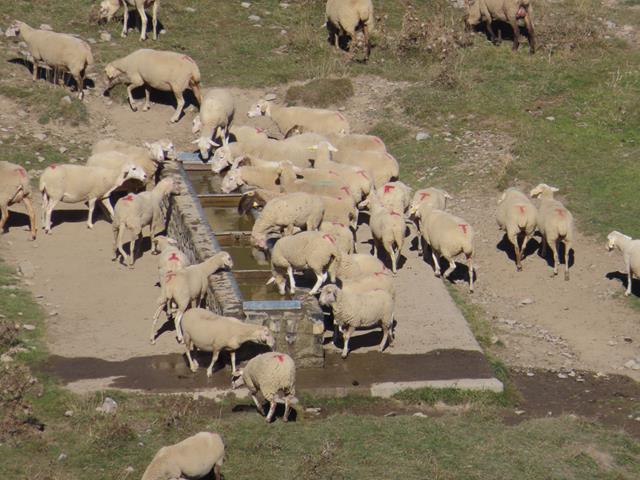 Un nutrido rebaño de ovejas pulula comiendo pastos por el fondo de Cuello Arenas. Desde aquí con el zoom me recreo en hacer fotos al grupo de animales. Una oveja viva cuesta entre 70 y 80 euros por cabeza. Ahí abajo hay unos cuantos euros en ganado.