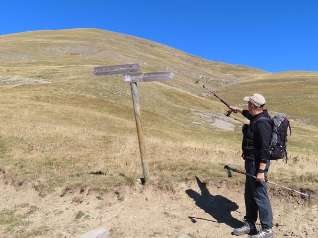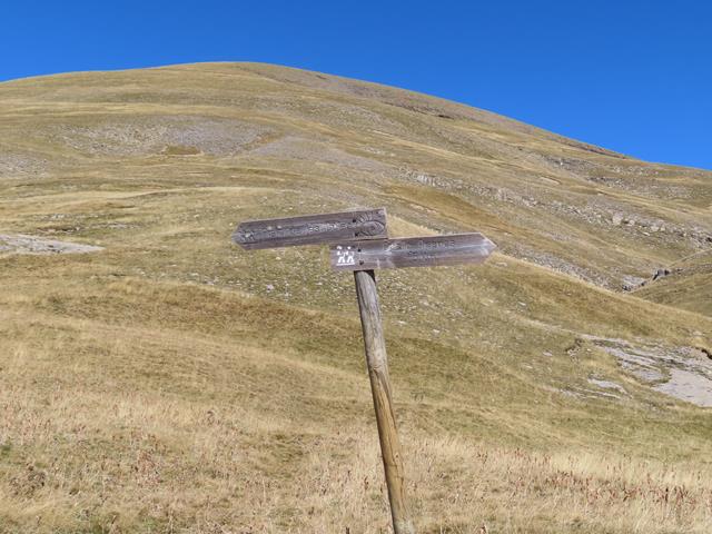 Tras 7,37 km de excursión y a 2.005 m de altura, llegamos a unos carteles indicativos en el lado derecho de la pista.