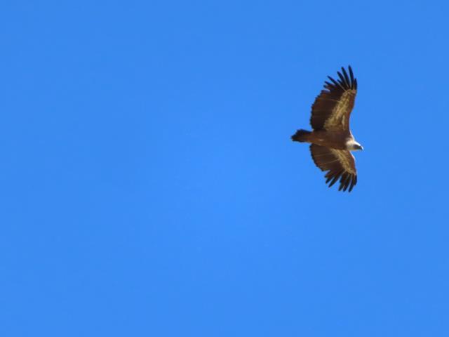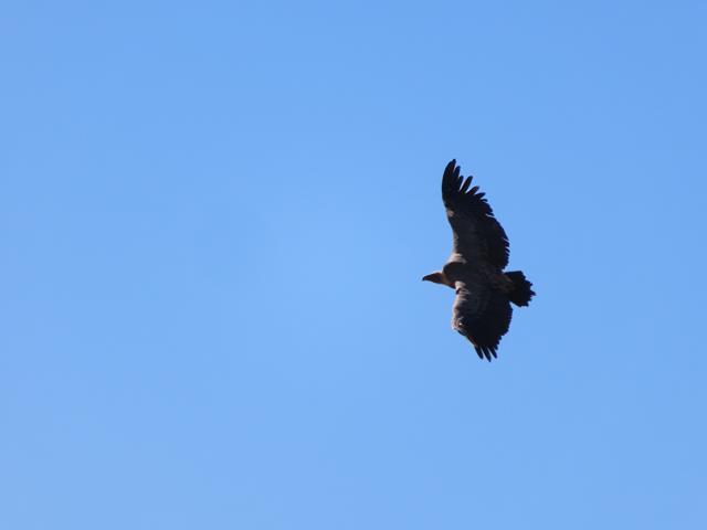 Comenzamos a subir y hacen su aparición las rapaces y buitres. Sobre mí un quebrantahuesos. Después un buitre leonado. No pueden faltar las fotos en vuelo con el zoom. Últimamente en casi todas las salidas tengo la suerte de poder fotografiar el quebrantahuesos, cosa no fácil.