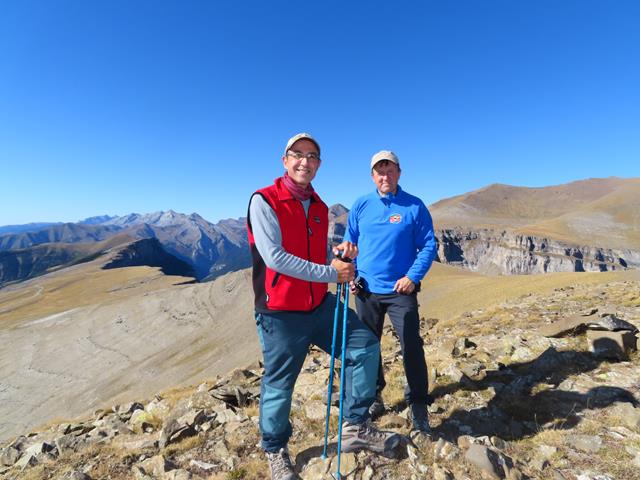 Como curiosidad señalar que por la cumbre cruza el meridiano internacional de Greenwich (a unos 40 m. al W. más exáctamente) y que entra en España por la zona de Ordesa y cruza todo Aragón. Así que lo más seguro es que estuviéramos a un lado y a otro del meridiano en algún momento cuando hicimos cumbre.