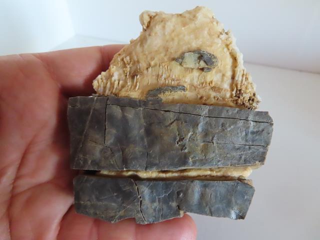 Os pongo unas fotos que he hecho en casa, ya a la vuelta. No sé lo que es. Parece pizarra y entremedio y por encima llevan como una incrustación de algún tipo de mineral. Pero me parecen muy chulas.