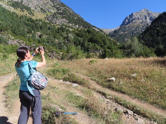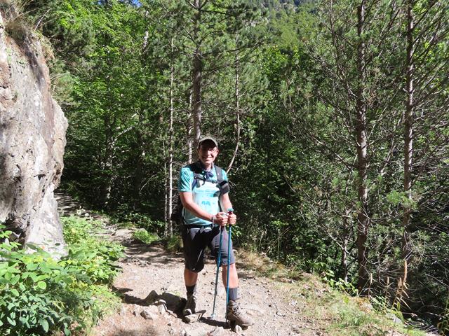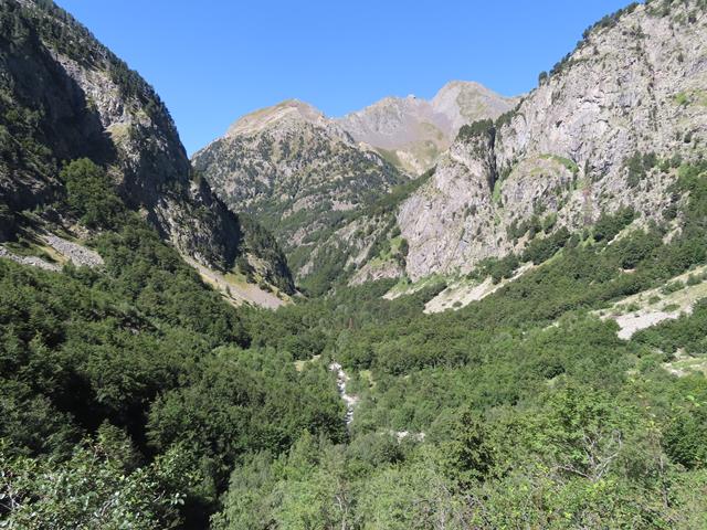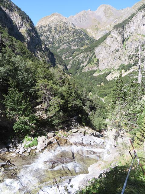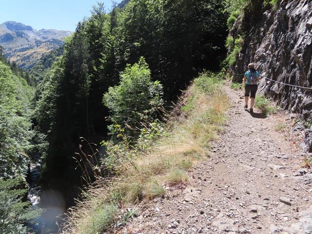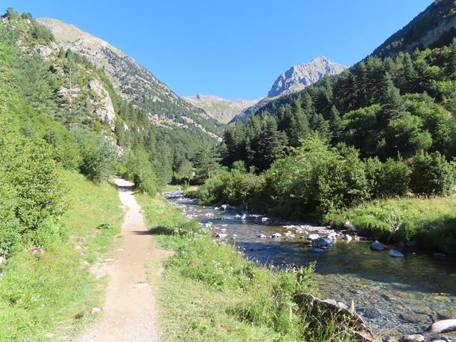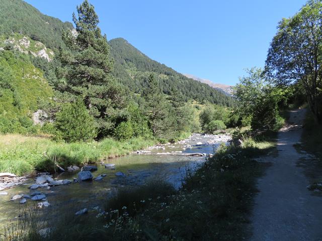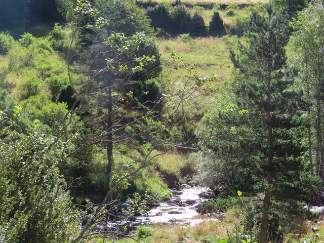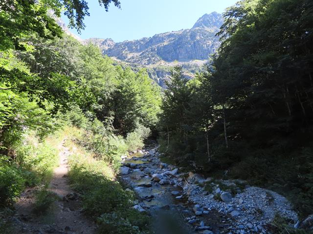 Mirando a la derecha entre los árboles, a veces podemos ver el bonito río Aguas Limpias, que hace honor a su nombre, pues son cristalinas, como las que llevan casi todos los ríos de alta montaña del Pirineo.
