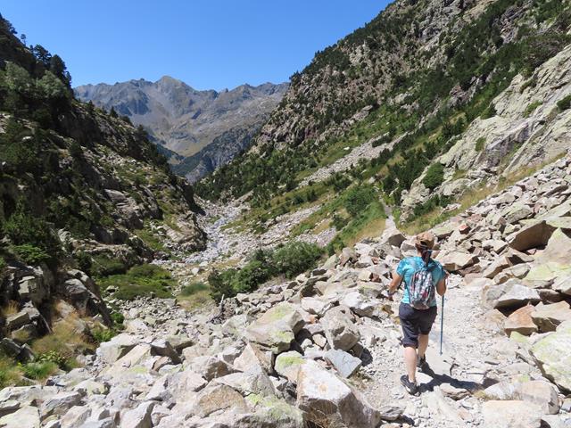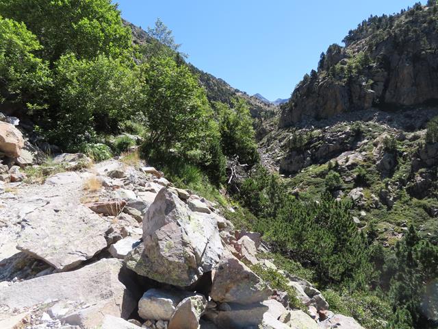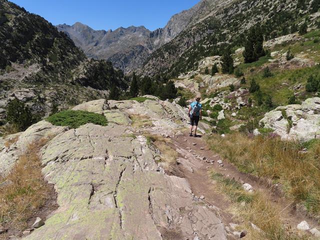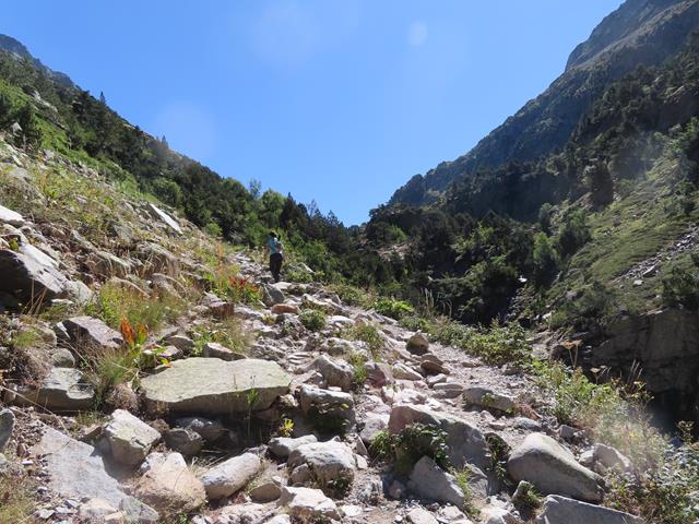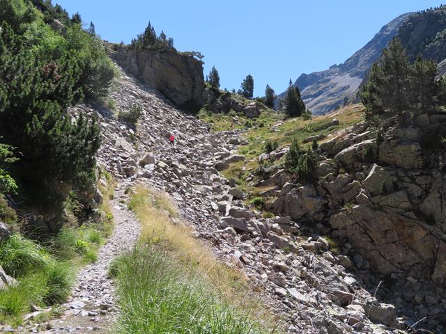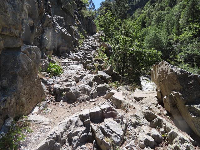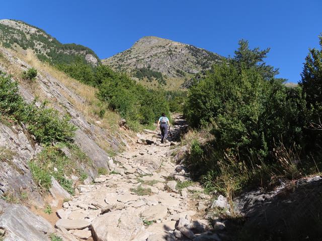 Continuamos por la senda y como se puede ver, el suelo ya está totalmente cubierto de piedras, lo que hacen el firme muy irregular. Ahora la marcha se hará un poco más costosa y lenta, pero la belleza del paisaje compensa el esfuerzo y lo más incómodo del camino.