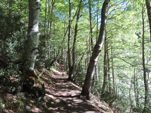 Seguimos caminando por este bonito bosque de hayas. El suelo está recubierto de hojas secas, lo que lo hace muy fácil de pisar, además la senda en este tramo es muy cómoda. Se agradece la sombra que nos proporcionan los árboles.