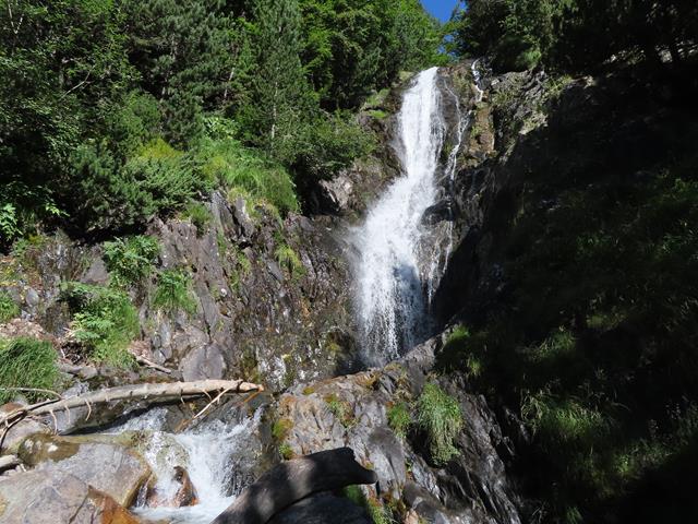 Antes de dejar definitivamente el Llano Cheto, atravesaremos el barranco y torrente de Arriel bajo su impresionante cascada. A partir de aquí, como ya os comentaba, la senda se vuelve mucho mas empinada y va ascendiendo por la llamada «cuesta del pino». Llegaremos hasta la cima de otra espectacular cascada que crea el río Aguas Limpias, la que os decía antes, la de Pipós .