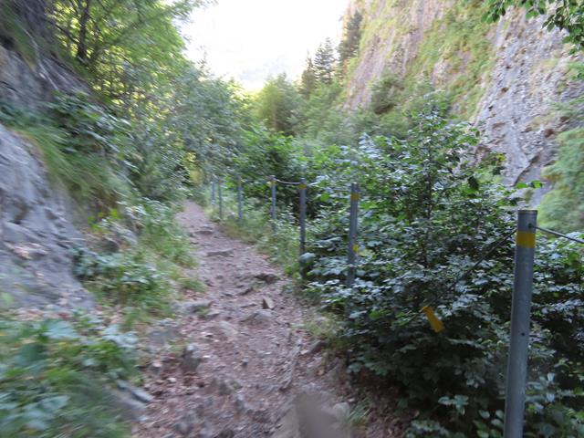 Han colocado atadas entre los árboles unas cintas como las que se utilizan para subir y bajar las persianas. Entiendo que es más bien una medida disuasoria para que la gente no se asome, pues la caída desde aquí podría tener fatales consecuencias. De todas formas, la senda es suficientemente ancha y no hay peligro.