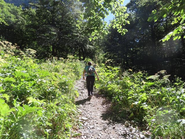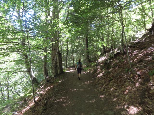 Una media hora después de haber comenzado la caminata nos adentramos en un precioso bosque de hayas. El paisaje sigue siendo magnífico y exuberante, con todo tipo de vegetación. Una pared rocosa junto a la senda está cubierta de agua.