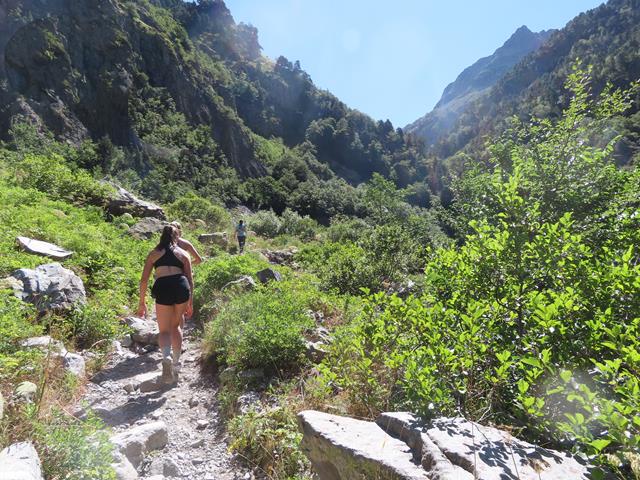 Y ahora sí, llegamos al desvío para llegar a los ibones (lagos de origen glaciar) de Arriel. Hasta ahora, la senda ha sido relativamente cómoda en cuanto al firme, aunque en constante ascenso. Habremos cubierto unos 4,5 km y 320 m de desnivel positivo. A partir de aquí ya no será tan cómodo.