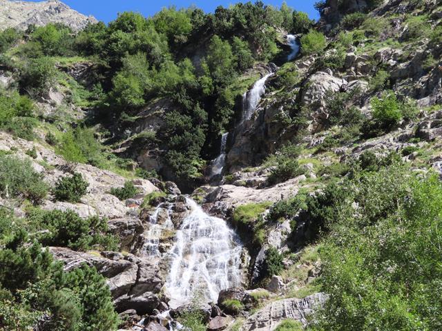 Cuando terminemos de atravesar esta zona, la senda comenzará de nuevo a subir con fuerza y llegaremos a las proximidades de otra cascada que se ve desde aquí a lo lejos, la cascada de Aguas Limpias o de Pipós, pero antes pasaremos junto a otra, la de Arriel.