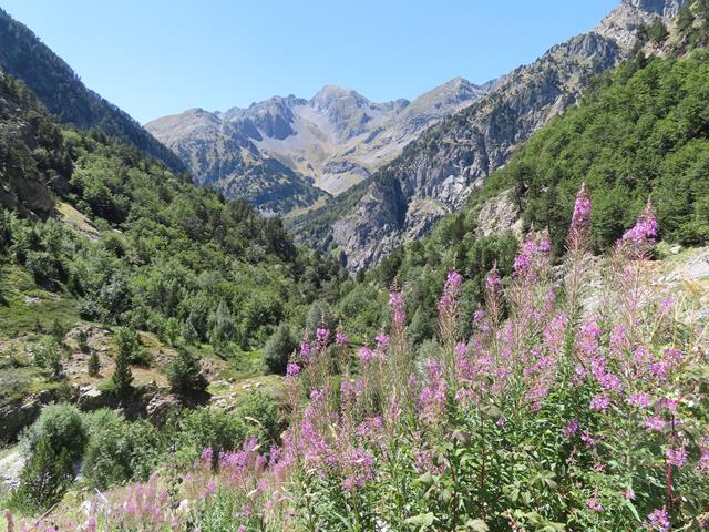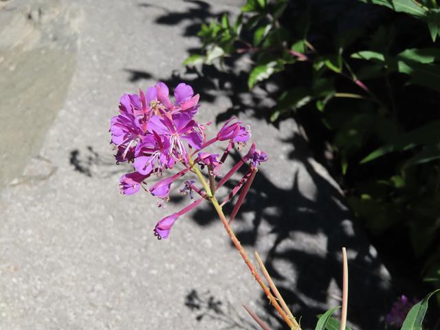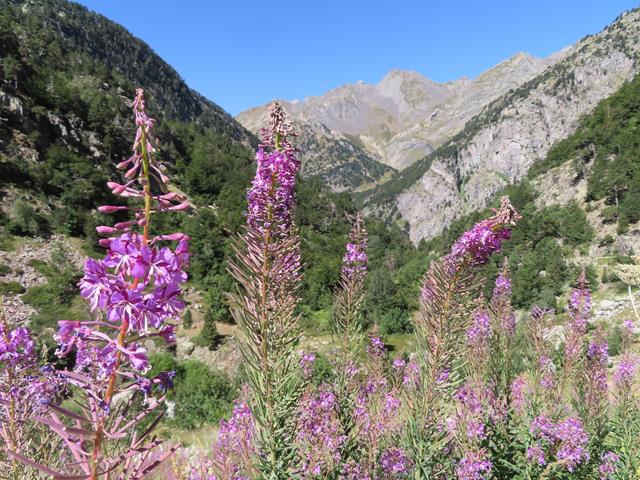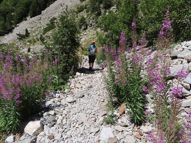 Por aquí abunda una planta: los Epilobiun de hoja estrecha (Epilobium angostifolium), que es una de las hierbas más vistosas de los claros y los caminos de bosque. Suele aparecer después de los grandes aludes. Tiene frutos con pelos sedosos para volar.