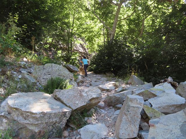 Cómo podéis observar en las fotos que siguen, la senda cambia poco en su apariencia. En algún tramo se nota que ha intervenido la mano del hombre creando terrazas a base de aplanar las piedras en las zonas en las que la ladera es muy pronunciada, pero poco más. El resto sigue igual de pedregoso.