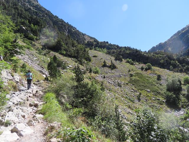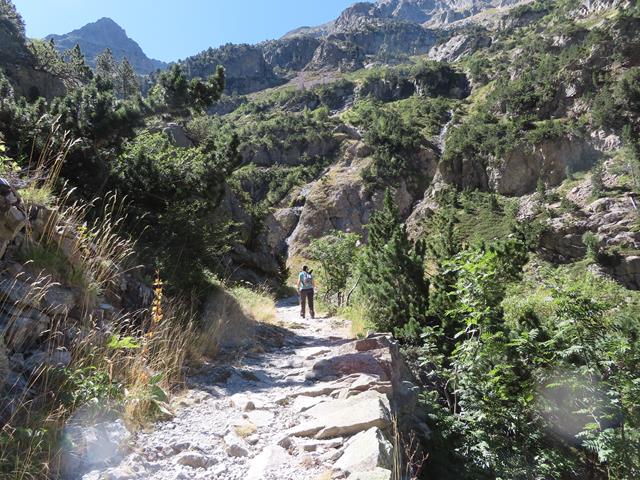 Por aquí el camino sigue siendo bueno, pero ya se va notando que se estrecha algo. El paisaje es magnífico, y el olor a bosque también. Aparecen algunos bojes, uno de mis arbustos preferidos del Pirineo.