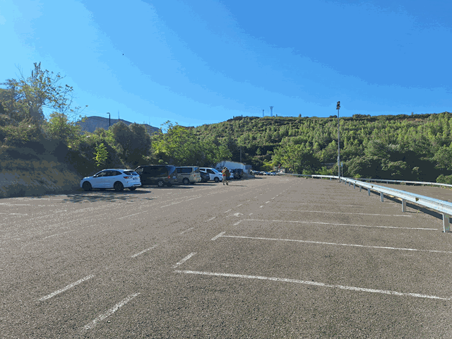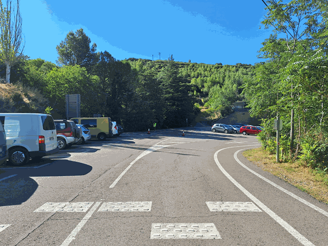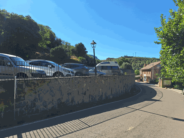 Una vez pasado el bar, me encuentro de nuevo con otro aparcamiento, a la derecha, donde no parece haber muchas plazas disponibles. Este no es de pago. Entiendo que será para los residentes del pueblo y autorizados, y tal vez sólo durante el periodo estival. Habría que ver si el resto del año se puede acceder aquí directamente o ya definitivamente hay que aparcar en los habilitados de pago. Más bien sospecho que será esto último independientemente de la fecha.