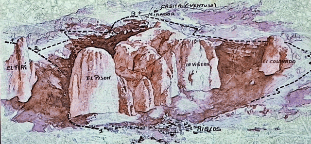Posteriormente, con el paso del tiempo, la acción del agua, el hielo, el viento y el sol ha modificado sus formas, creando las zonas superiores redondeadas que podemos ver hoy en día. Estas impresionantes estructuras alcanzan alturas de hasta 275 metros de altura máxima (espolón norte del Mallo Pisón)