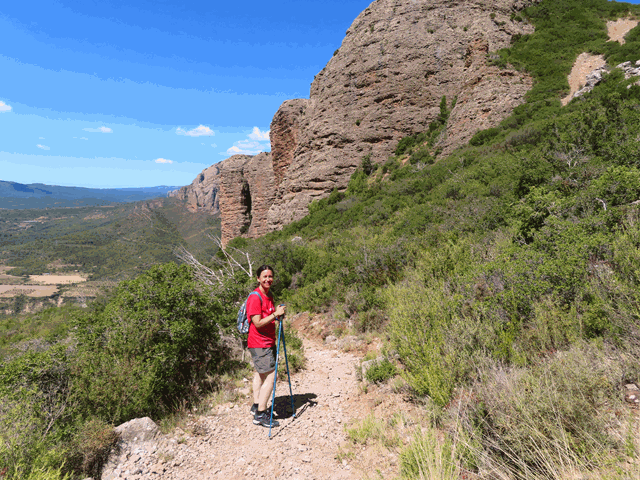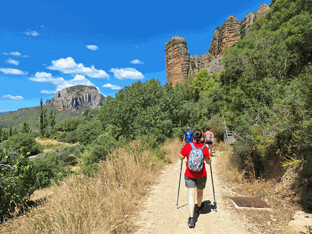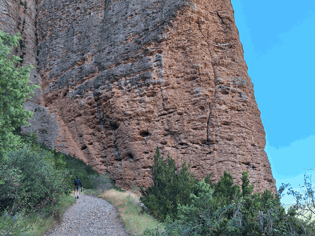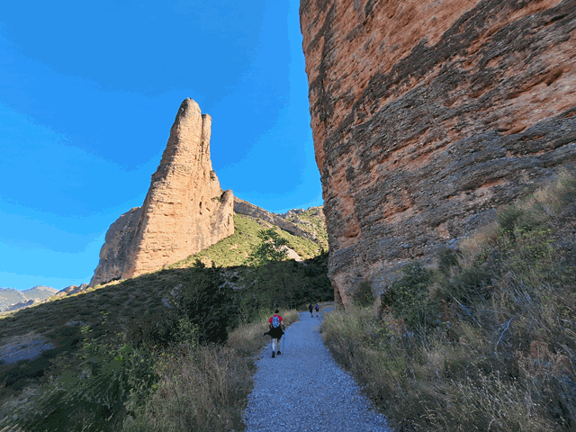 La senda es amplia y muy bien trazada y nos va introduciendo cada vez más entre el mallo Firé (izquierda) y el mallo Pisón (derecha) que impresiona. Dicen que al amanecer o al atardecer, cuando el sol ilumina estos conglomerados, dejan ver un bonito color rojizo que no deja indiferente.