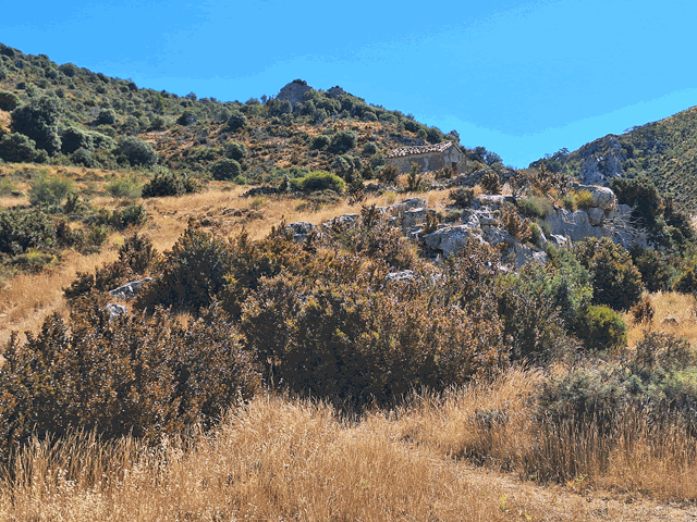 Mientras recorremos esta parte, nos damos cuenta de que un poco más adelante, a nuestra izquierda, en una posición elevada sobre el vallecillo, hay situada una pequeña edificación. Es un refugio pastoril.
