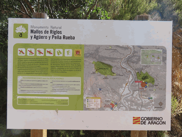 Pero si les prestamos un momento de atención nos indican que estos enormes Mallos de Riglos son Monumento Natural Geológico de Aragón, desde noviembre de 2016, junto con los de Agüero y Peña Rueba. Y hacen mención también sobre que el conjunto destaca en sí mismo por las abundantes poblaciones rupícolas, tanto de vegetación como de aves, ejemplos de ello son el buitre leonado, el quebrantahuesos, el alimoche, el halcón peregrino o el treparriscos.