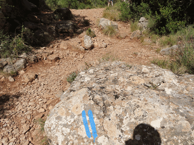 De vez en cuando aparecen dos marcas azules paralelas que nos indican que seguimos la senda del Camino del Cielo. En nuestro caso, como ya os comenté, en el sentido de las agujas del reloj.