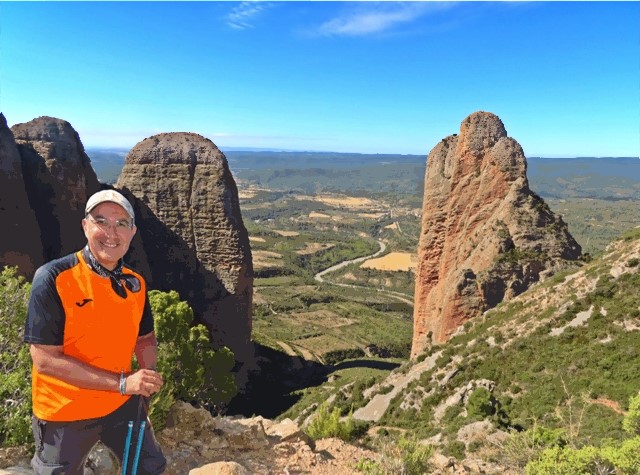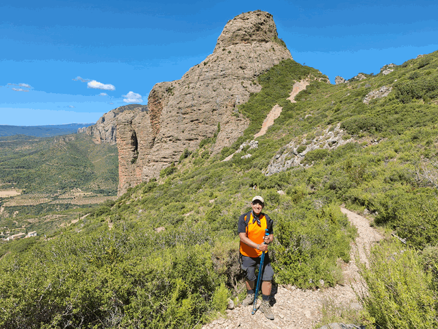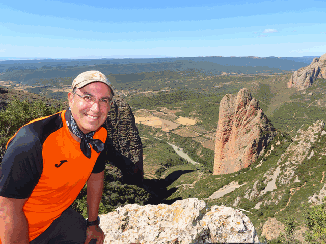 En este punto la foto es imprescindible. A partir de ahora ya comenzaremos a descender hacia Riglos aunque aún nos queda un mirador más por ver, el del mallo Colorado.