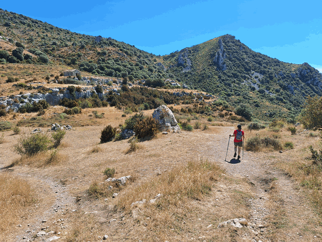 Seguimos avanzando y el terreno no cambia. Siempre en subida y con piedra suelta. El haber iniciado la marcha en la dirección de las agujas del reloj, nos ha evitado un regreso mucho más incómodo.