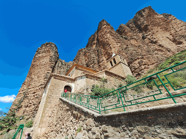 La iglesia está ubicada en un lugar espectacular, con los mallos de fondo y a sus pies. Este lugar es digno de visitar.El templo es un edificio del s. XVII y alberga las tallas románicas de la Virgen del Mallo y de la Virgen de Carcavilla. Intentamos entrar a verla, pero en ese momento estaba cerrada.