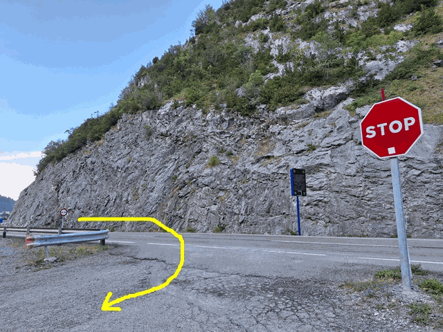 Sólo hay que recorrer unos 500 metros por la carretera, para encontrarnos con una salida a la derecha que nos lleva directamente a un puente que cruza el río Aragón. Pero cuidado, este es el acceso habitual hacia la zona a la que vamos, el Coll de Ladrones, durante gran parte del año, salvo en la época estival, dónde sólo los vehículos autorizados podrán pasar. De todas formas tranquilos, hay una alternativa.