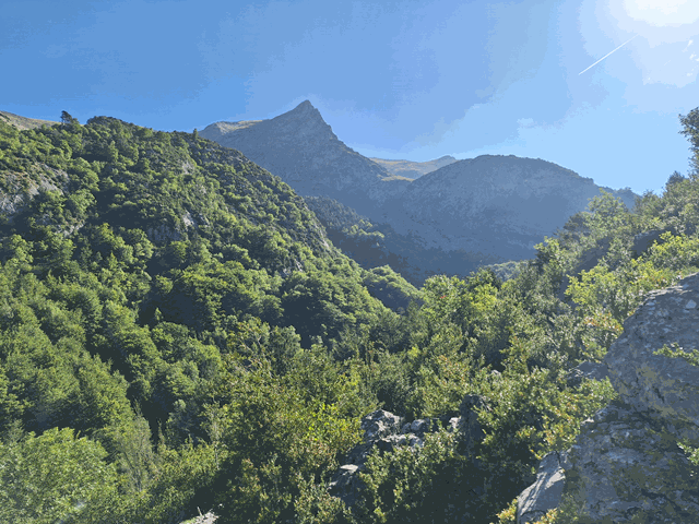 A medida que subimos, la vegetación se abre y deja ver el paisaje que nos envuelve. Por delante el silencioso valle de Izas, por detrás, el valle del Aragón. El día ha salido magnífico, las montañas se ven perfectamente en el horizonte.
