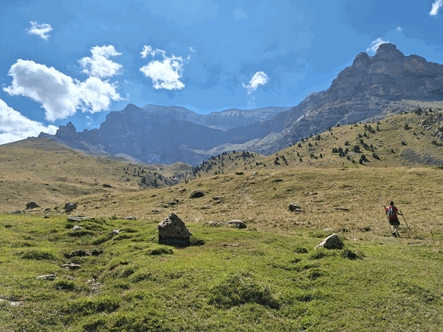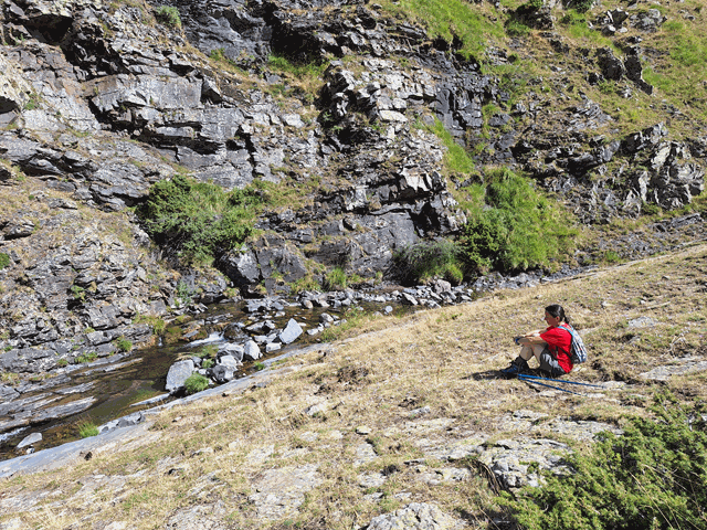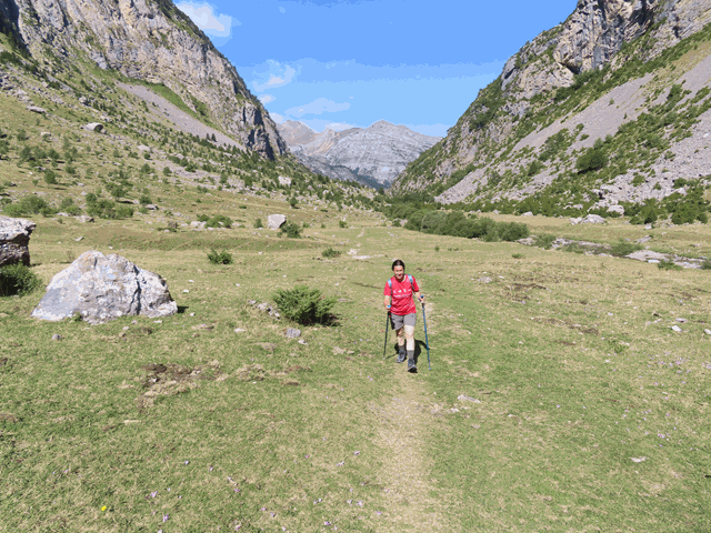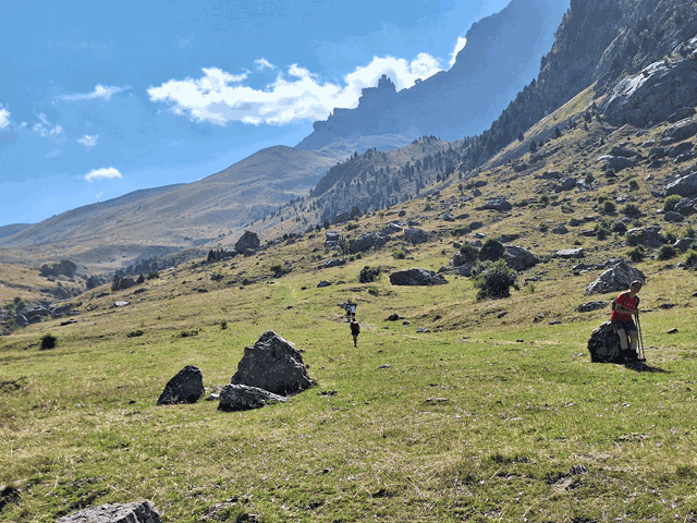 Y es que marchamos por estos parajes prácticamente solos. Vemos una única persona que va por delante de nosotros; una senderista con su perro. Se agradece la paz que te da la montaña cuando no está masificada.Este valle, menos conocido y transitado que otros, es un regalo para la mente.