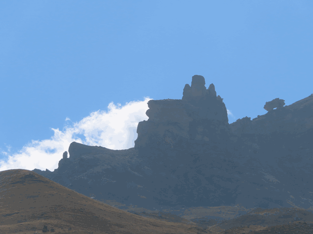 Tras un rato descendiendo nos volvemos a encontrar con la zona de la Cantalera. Alcanzamos a dos senderistas que van más lentos que nosotros. De todas formas, decidimos bajar a la par, así se nos hace un poco más ameno el camino conversando. Hay que hacerlo con precaución, pues las rocas están resbaladizas y hay mucha piedra suelta en esta zona. Uno de mis nuevos acompañantes lo experimenta en primera persona, pues por dos veces se resbala y da con las posaderas en el suelo, afortunadamente sin mayores consecuencias.