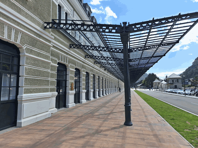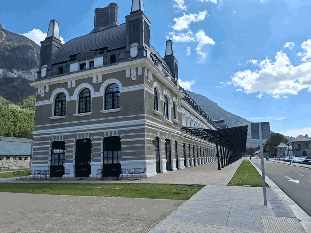 Tras acabar nuestro café, nos vamos a visitar la zona exterior de la antigua estación de Canfranc.