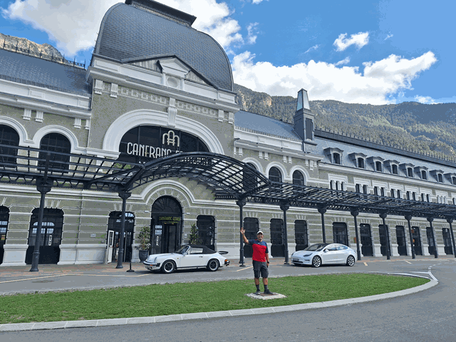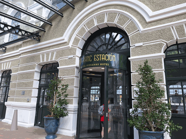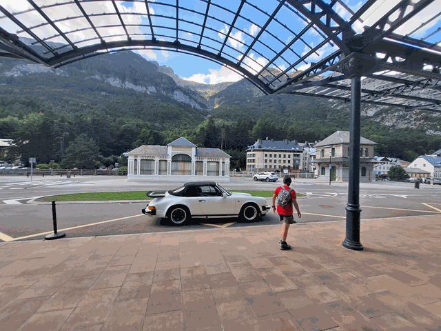 Para no tener que perder tiempo en retroceder hasta el aparcamiento inicial, cogemos el coche e intentamos aparcar en el propio Canfranc Estación. Es complicado, en pleno mes de agosto hay mucha gente y pocos sitios. Pero al final encontramos estacionamiento. Después vamos directamente a ver el precioso Hotel-Estación.
