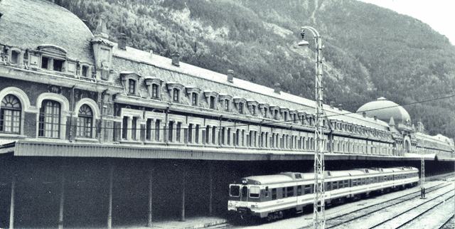 Bajo estas líneas os pongo unas fotos que realicé en 1992, cuando el edificio de la estación, hoy hotel, sólo estaba en uso para el transporte de viajeros y algunas mercancías que no podían pasar la frontera desde que en 1970 en la zona de L’Estanguet, (Francia) un convoy compuesto por dos máquinas y nueve vagones repletos de maíz, sufrió un accidente cuando se dirigía de Francia a Canfranc. Desde entonces no se ha rehabilitado el acceso, aunque para el 2030 dicen que se reabrirá la línea y se podrá de nuevo cruzar la frontera, ya se verá.