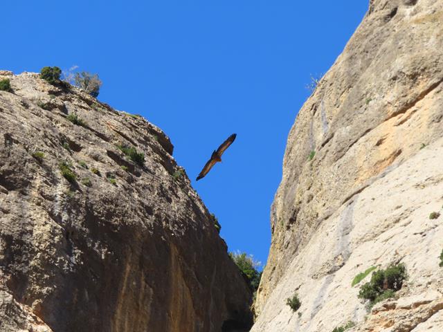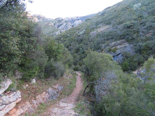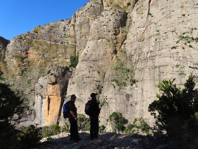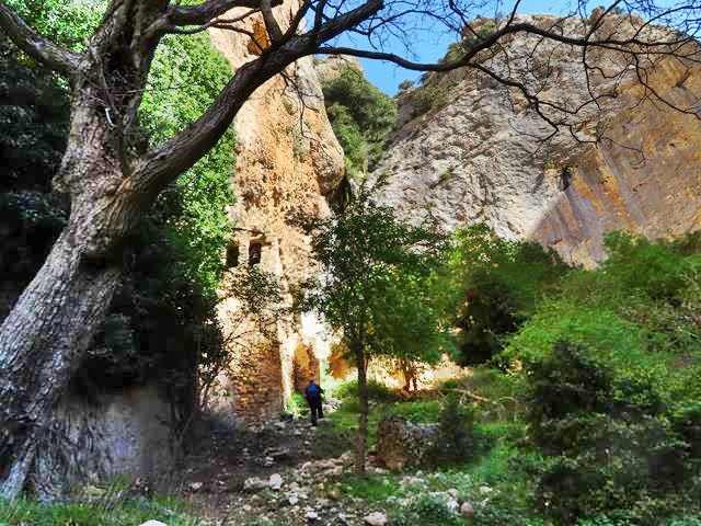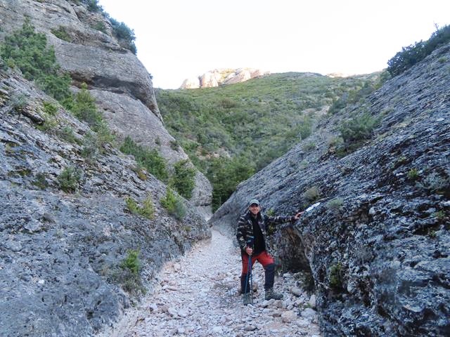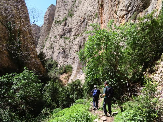 De nuevo, la senda se adentra en otro barranco, algo más pequeño que el anterior, y otra vez vuelven a aparecer las paredes de roca que nos envuelven. La sensación es de caminar por terreno virgen, salvaje y abrupto.