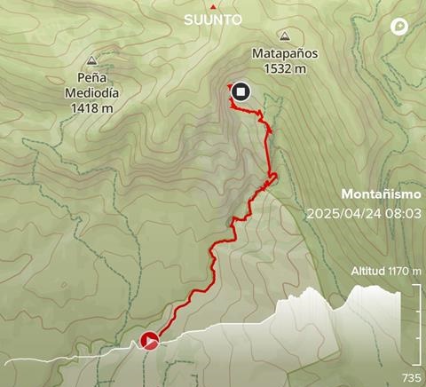 Como hago siempre,os facilito aquí el mapa de la ruta que seguimos en esta caminata, cortesía del reloj Suunto de Javier.Tened en cuenta que subimos y bajamos por el Paso de la Viñeta, de haber vuelto por la Senda de los Burros, hubiéramos alargado unos 9 km totales y 200 m más de desnivel.