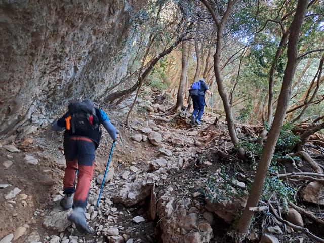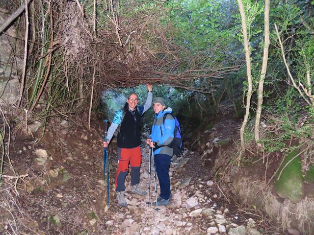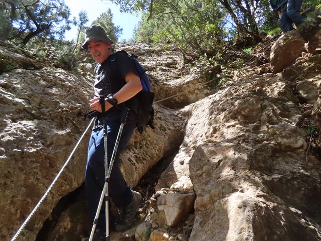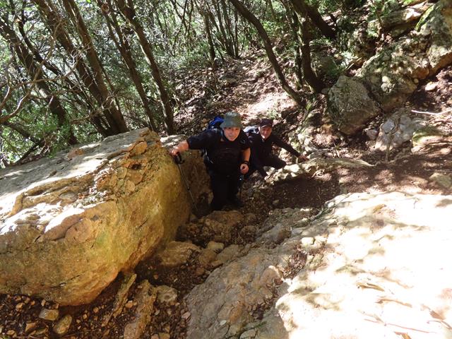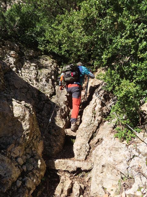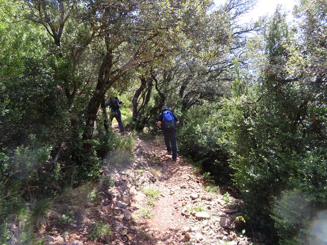 Vamos avanzando a buen ritmo por la escarpada senda, sorteando rocas, piedras y estrechos pasos en medio del bosquecillo. La subida se hace agradable, pues no hace excesivo calor y la sombra de los árboles viene muy bien.