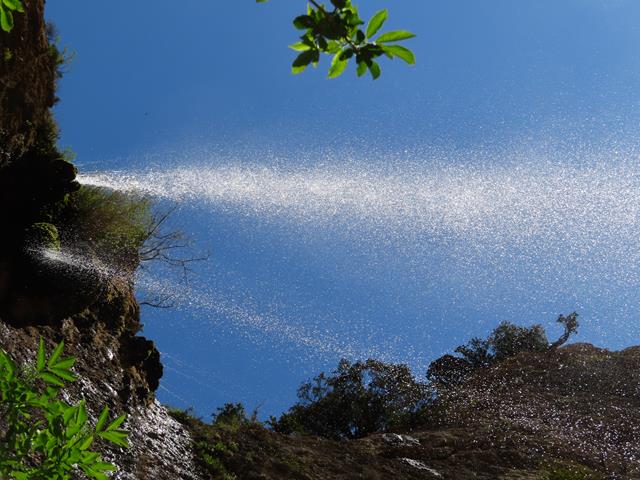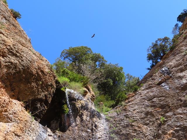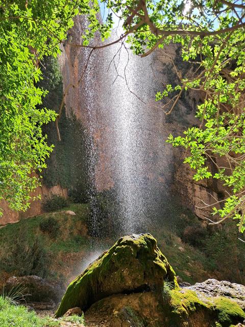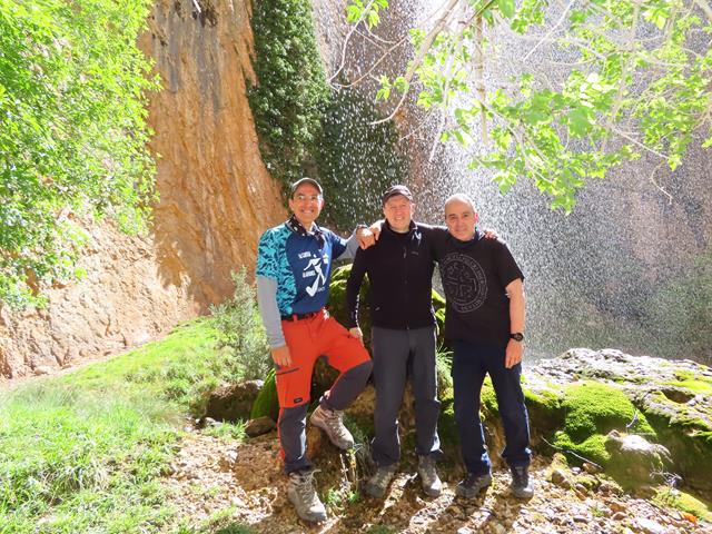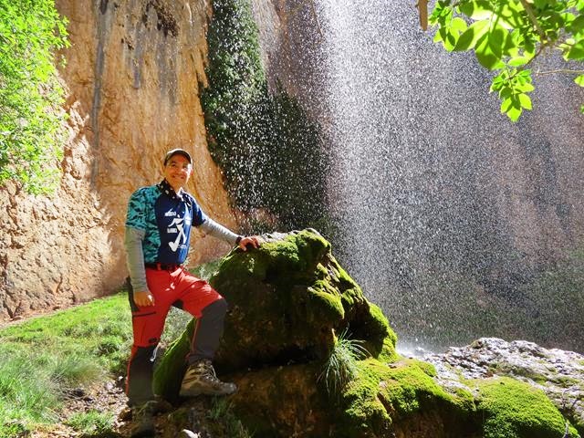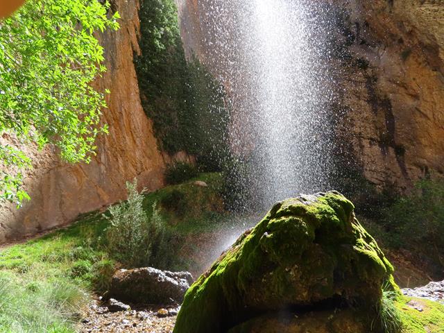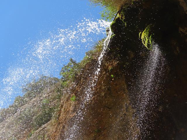 Bien se podría, si el calor fuera más intenso y se dispusiera de bañador, meterse debajo de la cortina de agua para refrescarse. Tal vez los antiguos moradores lo hicieran. Qué mejor ducha que ésta. No pueden faltar unas fotos en este entorno tan precioso. Así que inmortalizamos el momento.